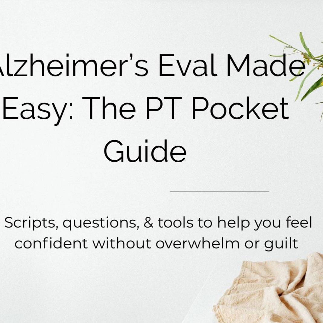 Your free PT Pocket Guide with scripts, questions, & tools designed to boost your confidence and bring clarity while evaluating individuals with Alzheimer’s Disease.